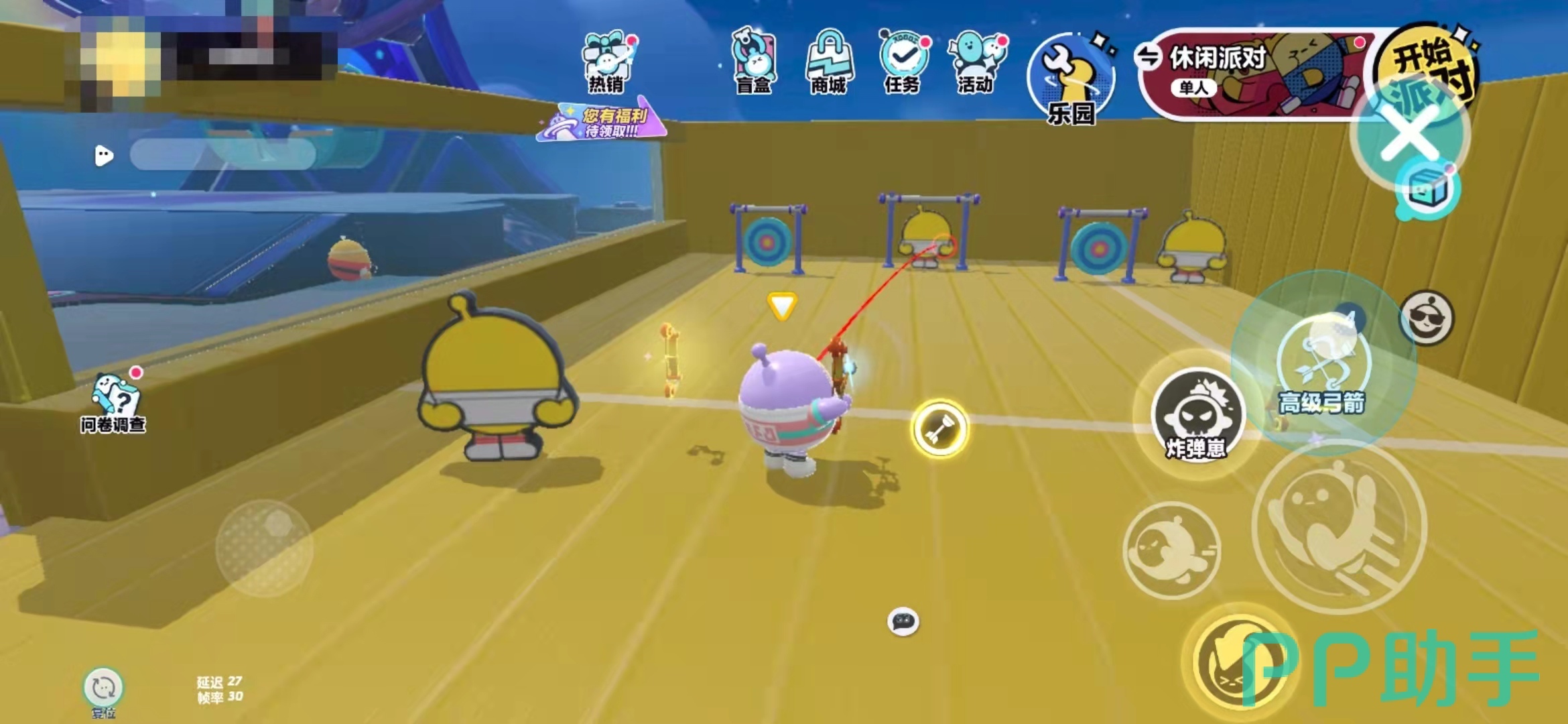 在摩天轮的左手边,目前是一处射击场,这部分也会变换不同运动主题。拿上弓箭,每把弓箭有5发,设置了静态靶,动态靶,还有蛋仔形的靶子,那么它有什么特别之处呢,快来蛋仔派对自己探索一下吧!靶场附近的紫色垫子,也是一处彩蛋哦!