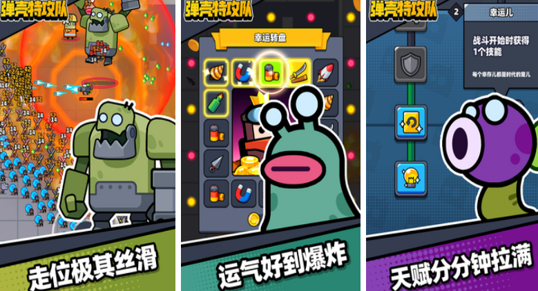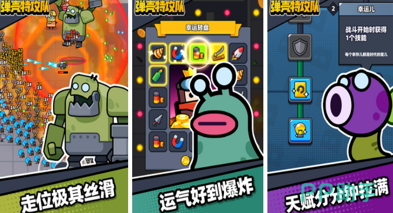 《弹壳特攻队》是只用一只手点屏幕就可以玩的刺激割草游戏,游戏中的小怪物数以万计,玩家要击杀这些小怪获得经验,每次升级都可以选择一个道具使用,可以是导弹、也可以是磁铁等,游戏中也没有啥花里胡哨的秀操作环节,只要玩家动动手指点击屏幕打怪就可以了。