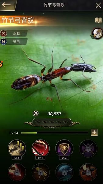 还有杰克蚁,它主要负责队伍里面的输出,因为它的输出是所有蚂蚁里面最高的,还可以给全队增加输出伤害。金壳蚁它是一个非常肉的角色,只要它在队伍中,就可以增加全员的肉度,不过这个角色的攻击伤害不是特别高,所以建议放在前排。