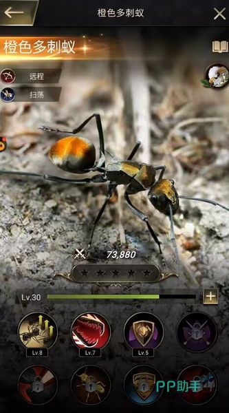 第二个是橙色刺蚁啦,它在外观上主要是黑灰白色,在屁股的尾短中间还有一点橙色。它是一个远程攻击的扫荡蚂蚁,他能给自己所在的队伍增加伤害效果,所以建议大家在使用它的时候,可以搭配一个高输出的队友,然后就可以快速结束对战啦。