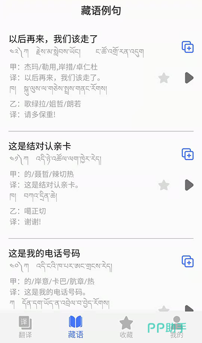 软件不仅提供藏语文字和音频学习教程,轻松收藏生词和难记词等,加深用户记忆,通过日常生活对话例句,掌握复杂的藏语,还一键翻译藏语,翻译效率和准确率高。