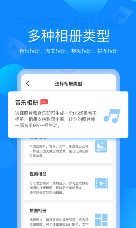 照片相册是一款可以让多张照片一键生成为视频的软件,根据小伙伴的自身喜好可以来添加背景音乐,内置不同模板,让你的照片更加绚丽多彩,更容易抓住人的眼球。这款软件操作简单,对于年纪大的也是非常友好,只要三步一键生成。