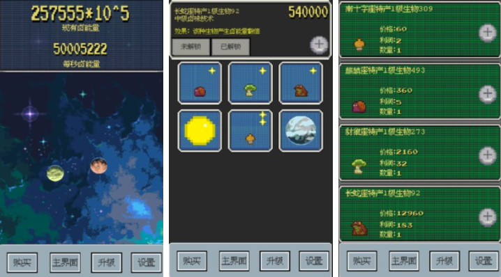 《星球建造大师》是一款氛围休闲的放置类游戏,游戏中玩家需要从一滴水开始将枯无一木的荒废星球逐步建设成为智慧生命遍布的活力行星。你的星球越先进,每秒钟所获得的收益就越高,而得到的这些收益可以让你回馈到星球建设上,形成良性循环。