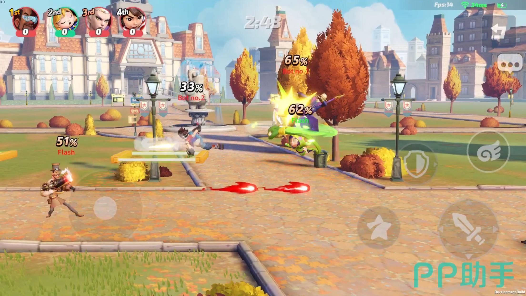 游戏中最为吸引大家的当属独特的击飞值模式,需要通过各种途径将对手击飞出屏幕之外就能够获胜,这里没有非常复杂的连招套路,用普通攻击和技能以及跳跃就组成了所有的操作模式。而取胜关键在于累积击飞值,只要能够累积满就能获得想要的效果,让对方无法返场就达到了我们的目的。