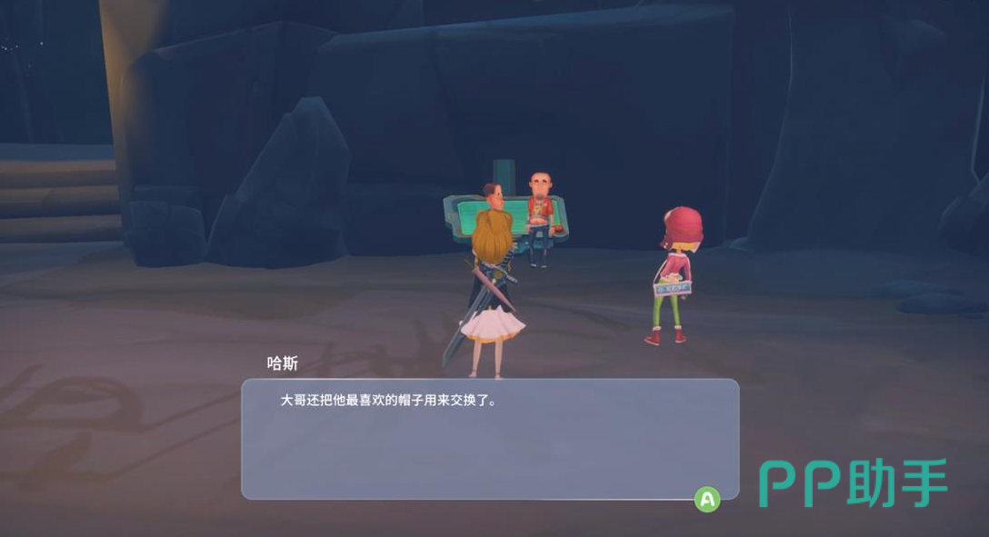 3、找到帽子之后去和东边区域的三姐一起进入到洞穴中,进入洞穴之后可以看到有两个小偷在玩弄先知的电脑。