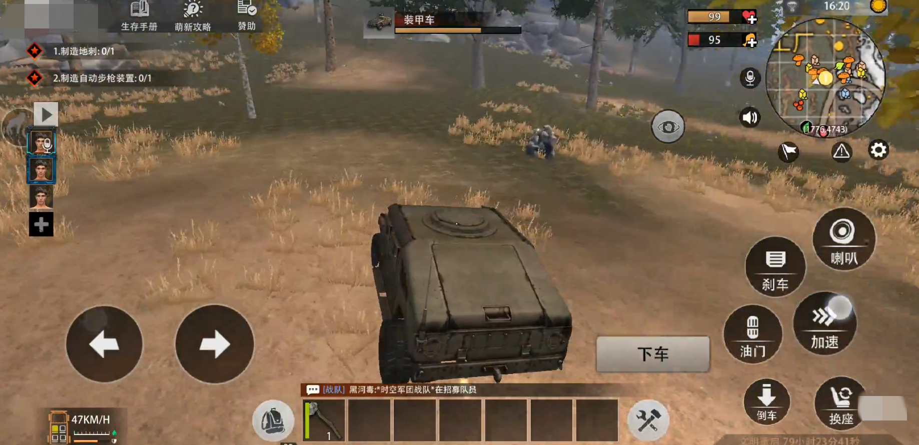 最后这款车就像上面说的一样,玩家可能很难在前期找到这么多的材料。所以一般是队伍里的人合力比较好制作,实力不强大不要去招惹开这种车的玩家最好了。