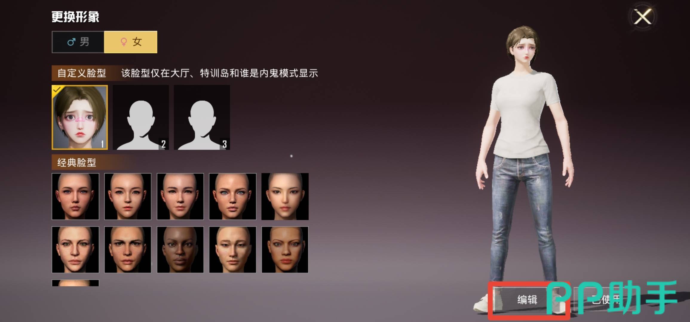 在更换形象页面选择自定义脸型,有三个选项,任意选择一个即可,点击进入到自由捏脸界面。