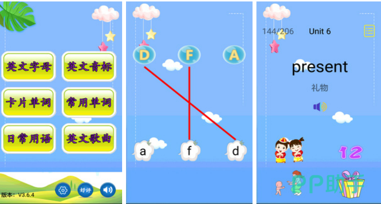 《儿童早教学英语》游戏里贴心的为小朋友们标注了英文的音标还有单词的意思,游戏中还有不同的游戏模式,可以让孩子学会唱英文歌,学习英文数字的读音,还可以教会孩子们用英文读出动物的名字,这款游戏可以彻底激发孩子的说英文的能力。
