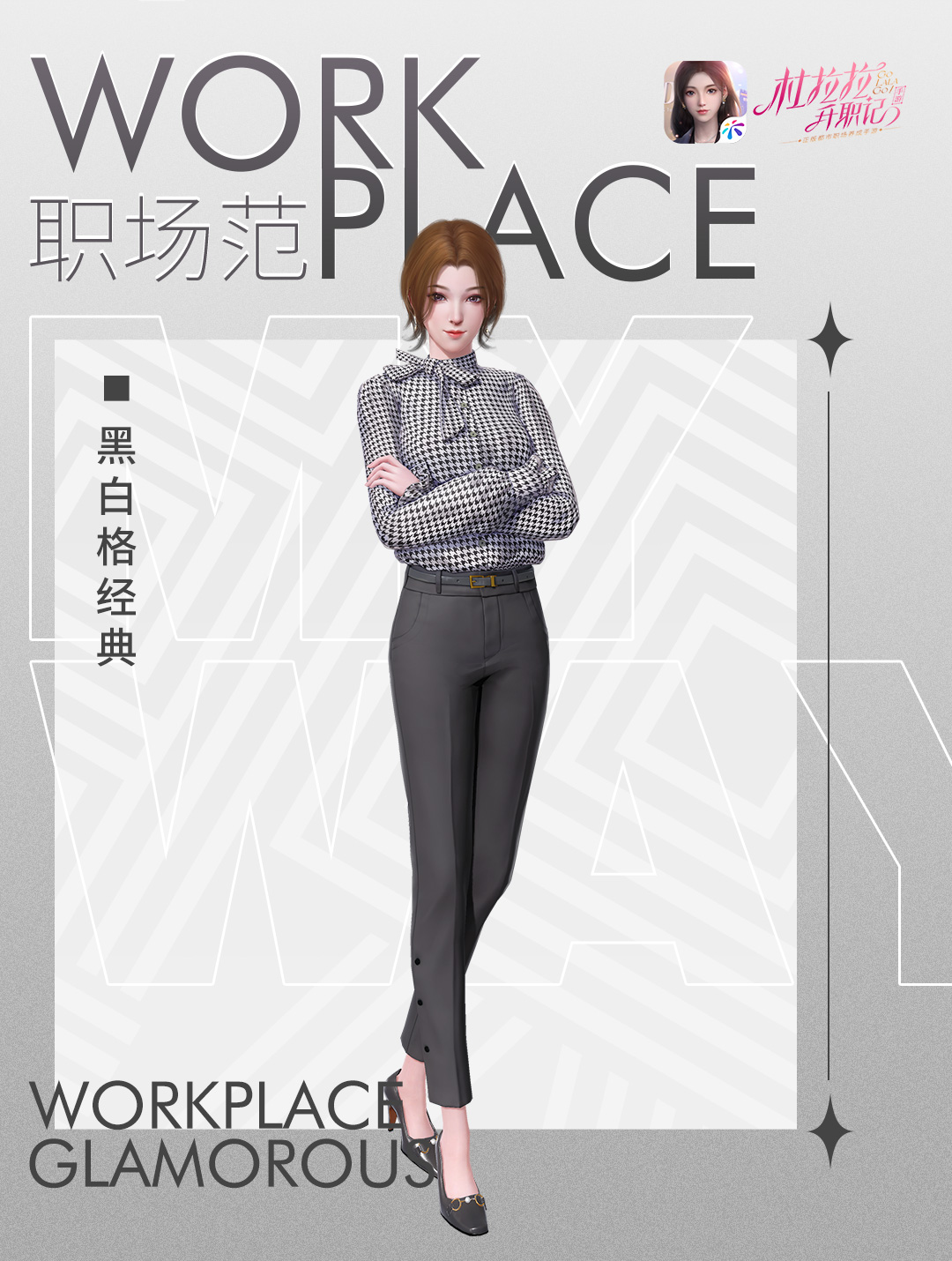 一般在游戏内的职业装的搭配基本上都是比较简单朴素的,毕竟是拥有工作场所,推荐的搭配方式就是黑白色的格子衬衫再加上一条宽容的裤子,职业人的形象就瞬间显示出来了,玩家也可以根据自身的需求进行装扮,就是选择衣服颜色的时候不要太绚丽。