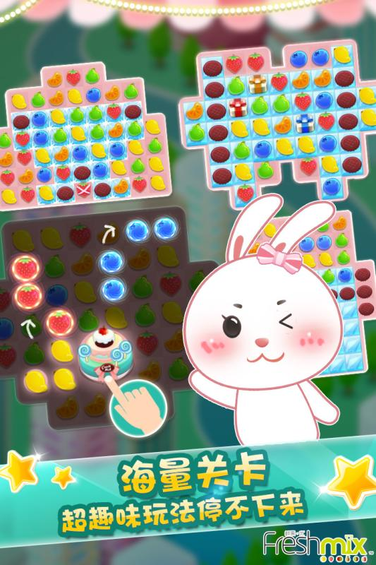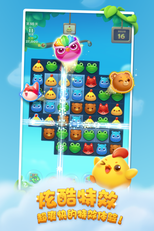 用户群体非常庞大的消消乐游戏,游戏里大家将顺着藤蔓一直往上挑战消消乐关卡,从一开始最简单的游戏模式到后面遇到的创意关卡,越往后越烧脑,趣味性也越强,游戏还有排行榜功能,快来和朋友一决高下吧!