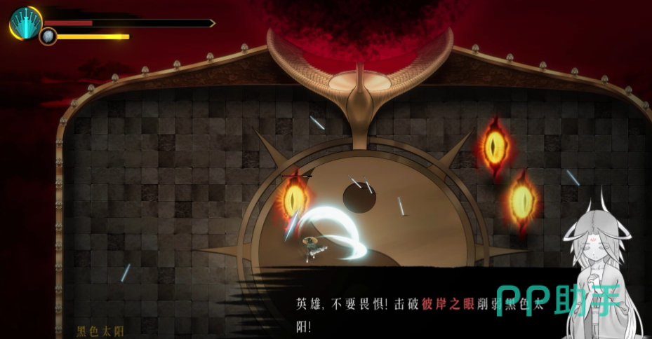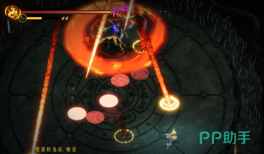 章节Boss司马瑛代表鹤家,一阶段技能都比较仙气,定点爆破的火球,追踪的闪电,请在走位的间隙进行输出。二阶段boss会魔化成黑色太阳,必须打掉地上的眼睛,再攻击本体才有伤害。火焰风暴类似猪王二阶段的范围技,熟悉技能范围和节奏后就不难了。