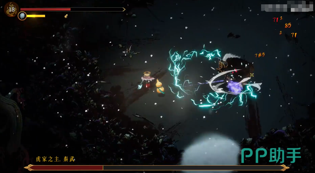 章节boss虎家族的秦武,仅次于最终boss的霸气boss,攻击方式直接霸道,长枪长剑交替劈斩,躲避难度较高,所以主要靠预判。同时距离他不能太远,否则会经常使用冲刺连击,命中后会抓取玩家造成很高的伤害,药不够的话很难顶住。二阶段就是一阶段的强化版,还有电属性伤害,打这个boss靠的就是熟练,没有花里胡哨的技巧。
