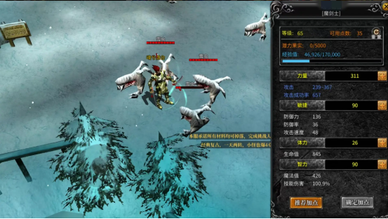 在属性当中,有力量、敏捷、体力、智力四个属性,力量主要是增加攻击力和命中率,敏捷主要是防御和攻击速度,体力指的是魔剑士的生命值,智力是魔法值和技能伤害方面的属性,魔剑士可以走两方面的路线,一种是可以主打力量的,一种是主加智力的,这两种魔剑士在能力方面各有千秋,如果是新手的话小编推荐前期主打力量,转职后可以进行智力加成,转换为智魔剑。