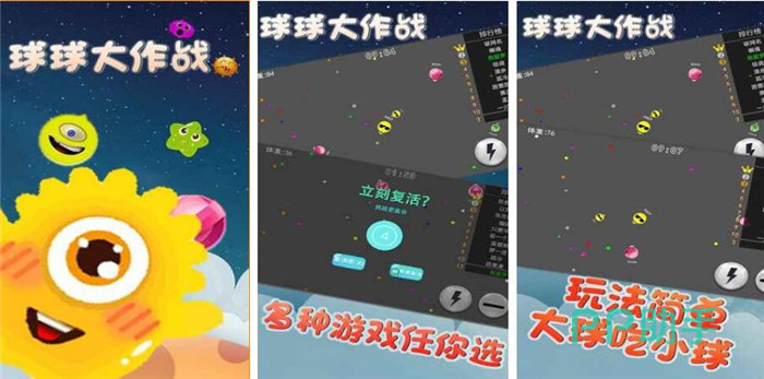 在游戏中你是一个小球球你可以通过吞噬别的小球来增加自己的体积,当你体积变大之后你的速度也会变慢,要防止被更大的球吃掉,当你遇到危险的时候还可以分裂出多个小球来逃跑,分裂一段时间之后也会自动合体的。我们的目标就是让自己变大变强。