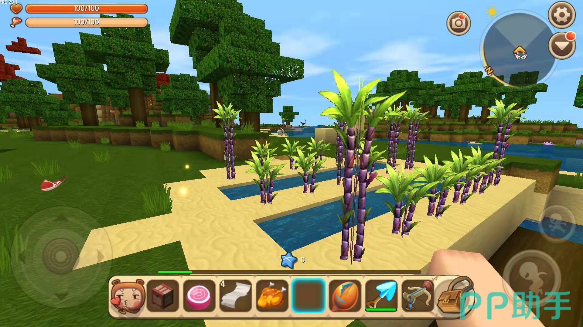黑皮甘蔗可以在湖边的细沙地上找到,也可以像小编这样整理一个甘蔗园,只需要小小的一块地就可以产出大量的黑皮甘蔗,甘蔗园的整理也十分简单,一排沙块一排水,这样交替的布置就行,然后在沙块上种上黑皮甘蔗即可。