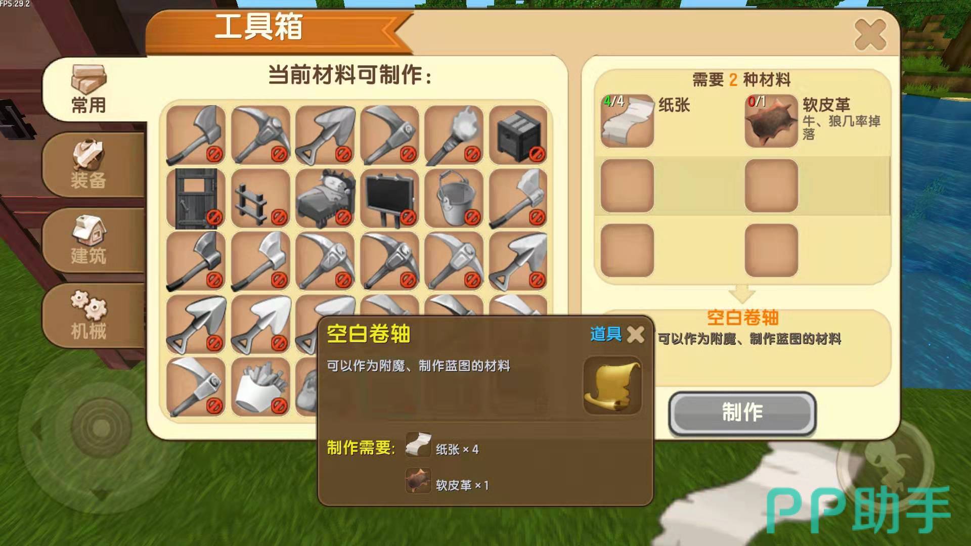 迷你世界的纸张是制作空白卷轴的重要材料。四张纸张再加一个软皮革就可以制作出一个空白卷轴了。