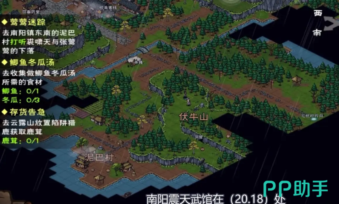 1、南阳震天武馆坐标点:20、18,要是需要学习基础的武技或者技能可以在这家武馆中购买秘籍。