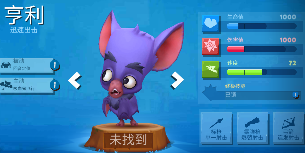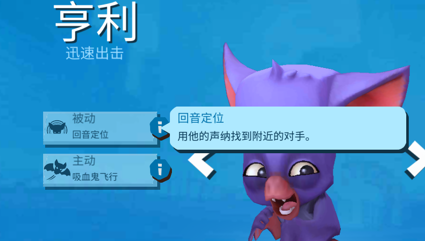 从面板上来看,亨利的属性并没有做到领先游戏中的多数角色,不过过千的伤害和生命至少可以做到让它不拖队伍后腿。速度方面看上去有点欠缺,貌似与其蝙蝠的外形格格不入,但其实这些都将在它的主动技能中得到补偿。