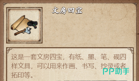 在洛阳的版图中可以看到文成书肆的地标,到达文成书肆以后就可以在其中买到文房四包,但是价格相对来说是比较昂贵的,也是这几个购买方式中最贵的,达到了180铜钱。