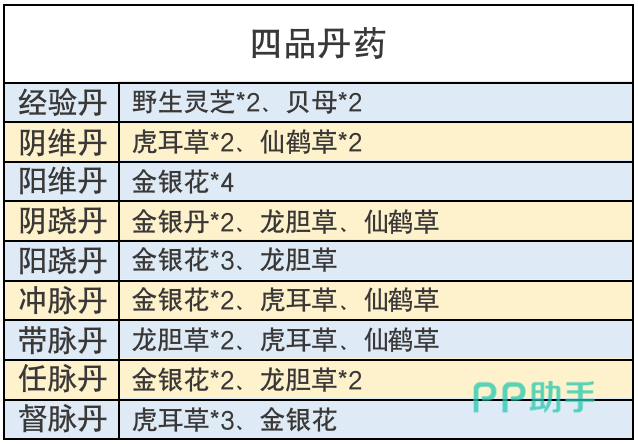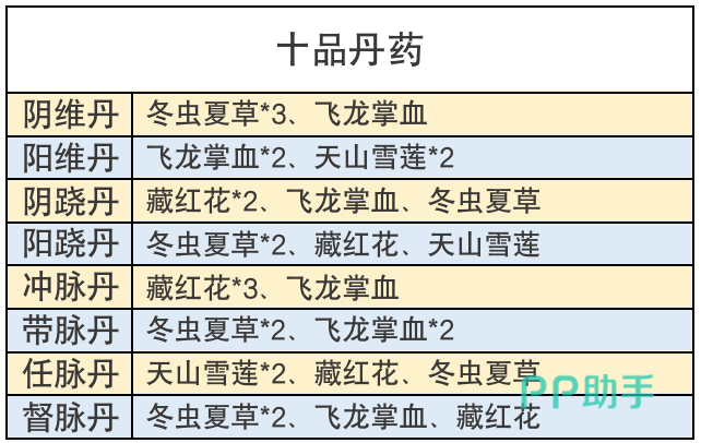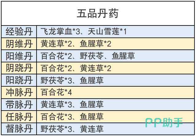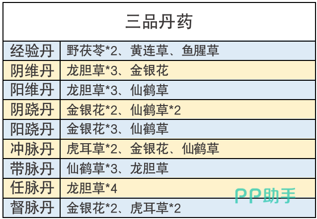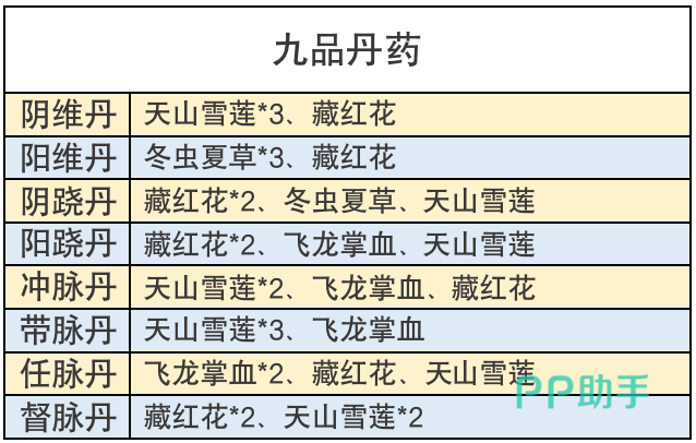 炼丹材料须通过江湖采集、江湖中的NPC商人、后山探索等途径获取。采集一次花费6体力,从商人处购买也要花费不少元宝,肝材料在小编看来可是很麻烦的一件事,所以积攒的草药一株也浪费不得,事不宜迟,小编这就将丹药配方为各位少侠们奉上。