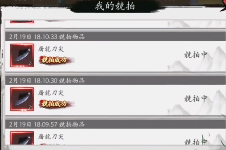 其中,以刀魄和刀锋最为昂贵,由于涉及到20级,起拍价都在2000元宝以上。而现在,这把屠龙剑的最高等级才20星。其他的材料,底价都比较低,最便宜的也就是几百块钱一件,如果不小心把材料卖掉的话,还能赚点钱。