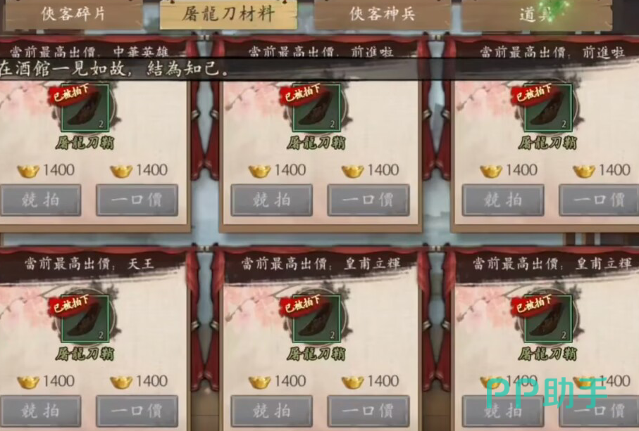 以上就是游戏新射雕群侠传中的屠龙刀材料的相关资料了,想必获得的途径大家也都知道了,需要在拍卖会上用元宝来购买,因为现在没有太多人会竞拍,所以这把武器的价格比以前便宜了不少,一般的玩家都能积攒一些元宝去争一争哦。