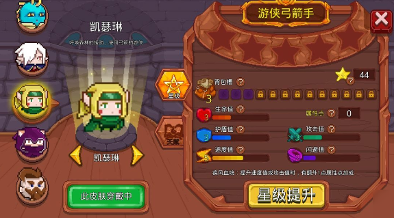2、凯瑟琳:是一名精灵族的弓箭手,由于精灵族身体的特点,角色拥有极高的机动性和远程伤害的能力。在血统的加持下这两个特点变的更加明显。天赋技能能够在角色攻击的时候进行闪避,更加加强了角色的操作性和机动性。技能是能够召唤魔法元素帮助自己进行战斗。