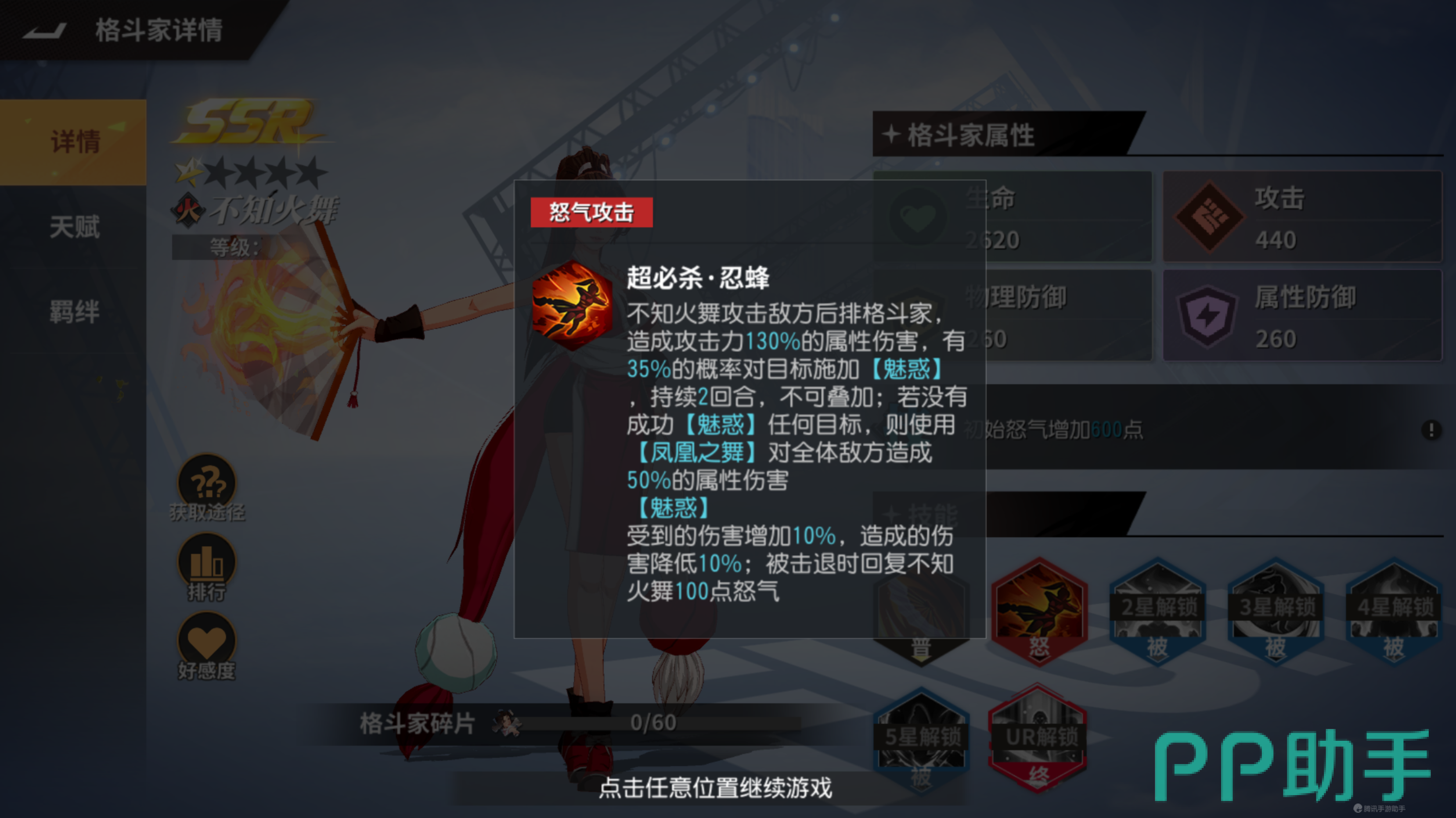 主要的特色就是二段攻击和魅惑,追击的凤凰之舞伤害不错还很容易触发,魅惑的角色会下降对她的伤害还让她能增加对魅惑角色伤害,标记魅惑的角色被击退可以让她恢复300怒气,能让大招更快释放。