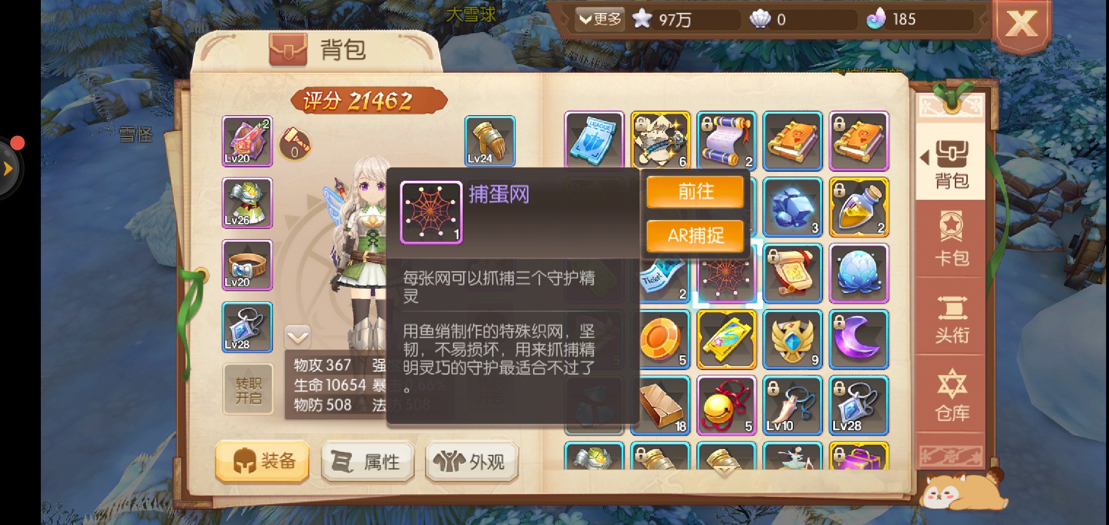 当我们进入游戏,会自动定位到上一次退出游戏时的所在地,并且没有进行任何任务,这时我们就可以捕捉了,不过玩家首先要获得捕梦网,它会在30级升级时由系统奖励获得,因为AR捕捉的基础条件就是到达30级,在具备这两个条件以后,就可以点击背包找到捕梦网。捕梦网形状就像是一张网,不认识的玩家也能够很容易的猜出来,点击捕梦网我们就能够看到捕捉方式,继续点击AR捕捉就可以开始捕捉之路了。