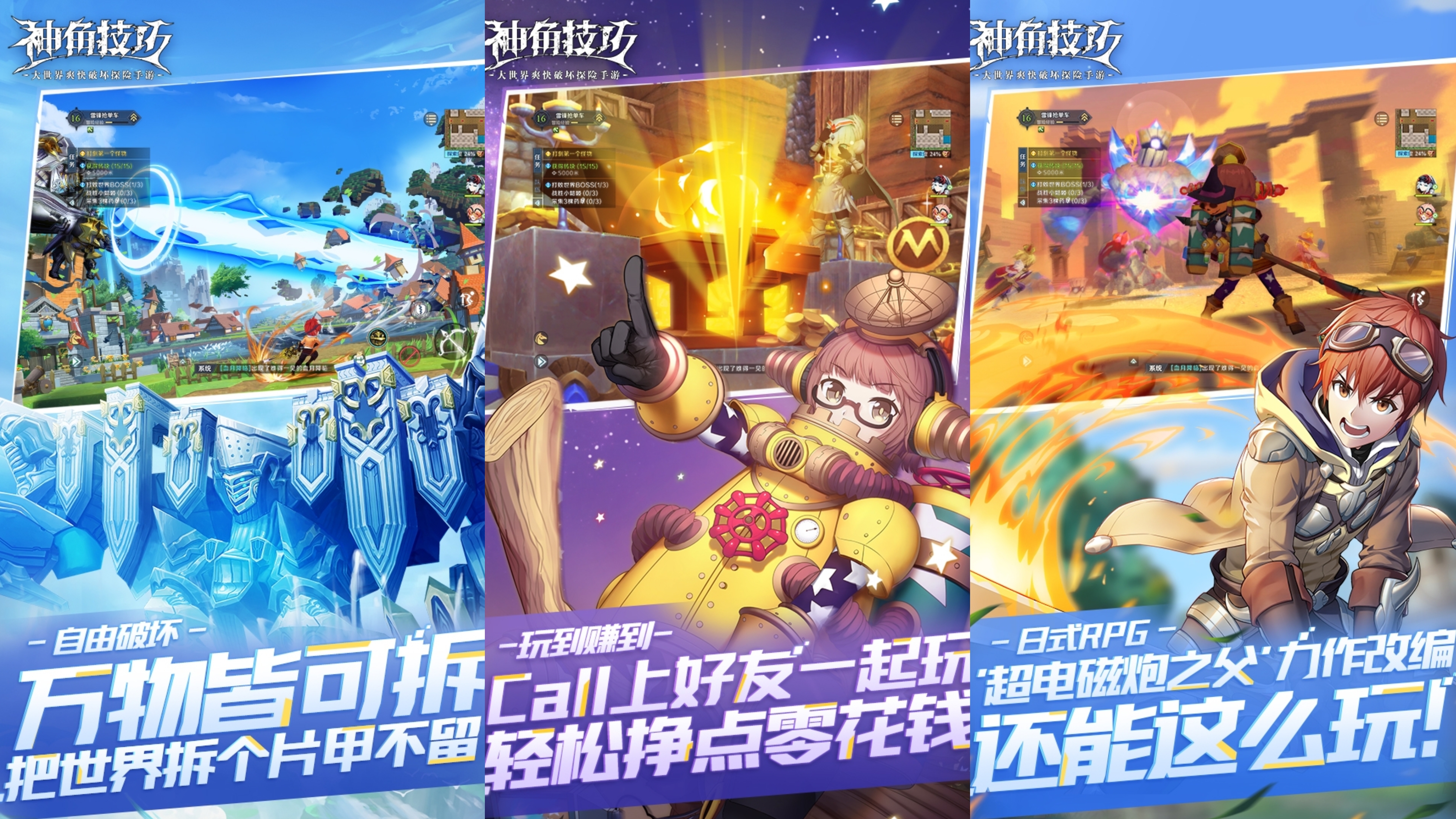 《神角技巧》这是一款日式风格的战斗沙漏游戏,对于它也是一款开放游戏,所以整体来说就是大世界了,大家可以一起建造这个世界,也可以破坏它。反正游戏中的万物都可以去探索建造起来,你可以靠这个生存下去,绝对是给了你们不一样的沙盒游戏体验!还可以和自己的好朋友一起共同的去建造闯关,真的挺不错的。
