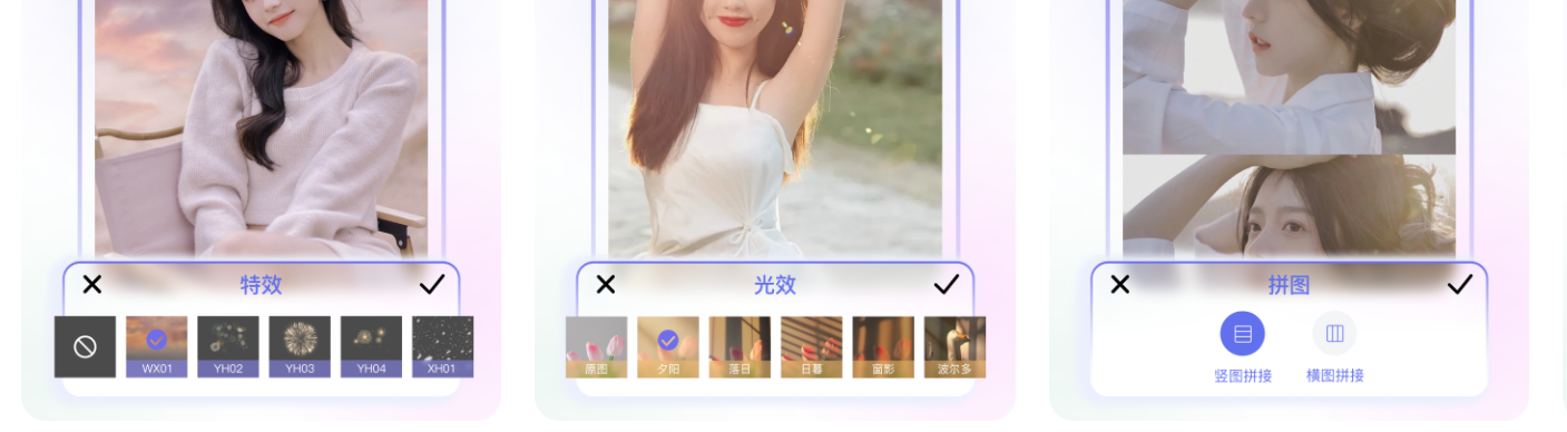 这款软件的特效与滤镜主要是针对人像的,这样拍出来的小伙伴们十分的好看。它有着各种好玩有趣的特效,还有许多实时更新的滤镜库,让小伙伴们可以体验到自己不同的美哦!
