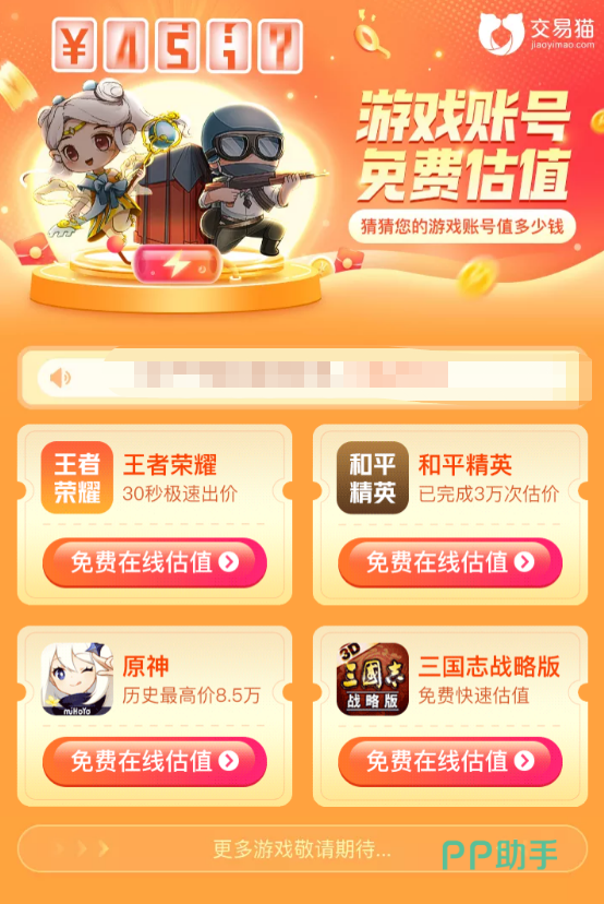 1、因为在交易猫这个专业的平台内,直接为所有玩家免费开放了估价功能,大家随时都可以利用该功能来检测自己的游戏账号,得出的数据也和当前的交易行情较为符合,大家可以参考这一类数据来完成自己的账号出售。