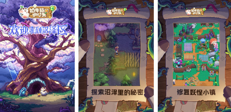 《奶牛镇的小时光》是一款模拟乡村田园游戏,这款游戏画风非常清新简约,玩家在游戏中可以经营自己的农场和牧场,也可以建设自己的家园。游戏还有引人入胜的剧情,原本平静的小村庄发生了地震,出现了一个神秘的通道,在通道的那边有什么呢?快来探险吧。游戏还有多种玩法,玩家在游戏中可以充分的体验大自然带来的乐趣,不仅可以骑马竞速,还可以去悠闲的钓鱼,快来试试看吧!