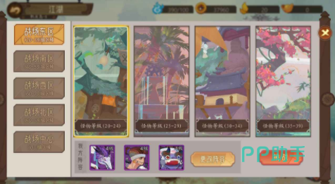 江湖墨世录的故事设定放在了武侠,咱们进入游戏后能够看到游戏官方将副本名称命名为战场东区、西区、南区、北区以及中心,每一个副本怪物的等级都不一样,因此玩家在选择挑战怪物时一定要搭配好卡牌阵容。