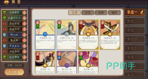 说到卡牌阵容那么咱们必须详细的介绍,江湖墨世录的卡牌阵容玩家在决定好之后是可以进行存档备用的,游戏也为玩家创建了队伍一到八供玩家组合存放。