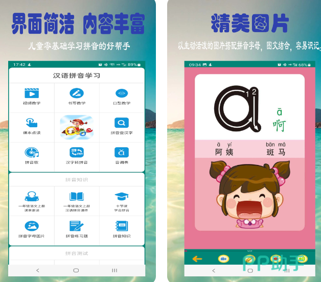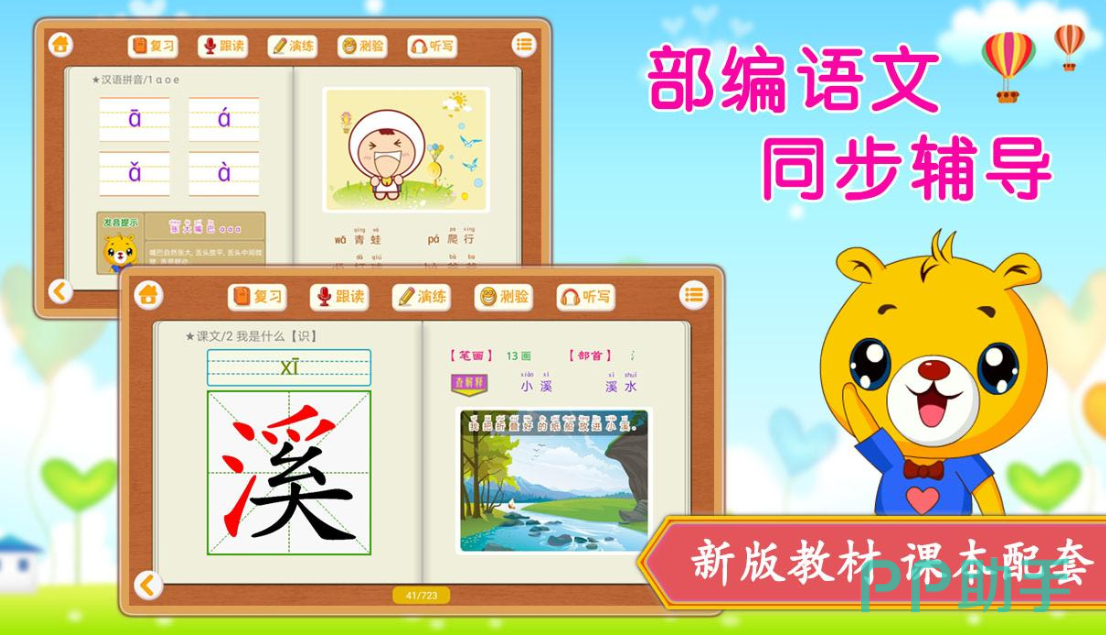 该应用算得上小朋友们语文学习的启蒙软件,专门针对小朋友的汉字拼音教学。里面不仅包含自制的拼音教学的教程,还结合了线下的语文课本。