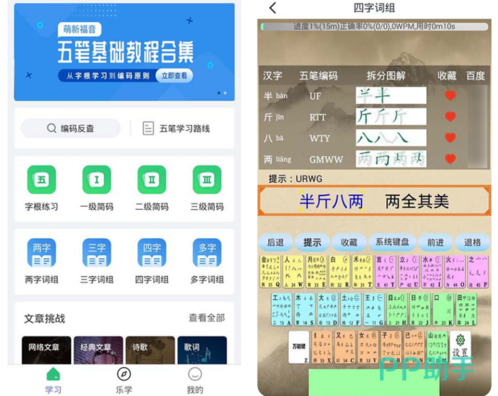 让用户可以零基础的从字根开始学习,慢慢的一步步升级,这里就86跟98两个不同的版本,适应哪一种就从哪一种开始练习。极简的界面操作起来非常的简单,即使是新手小白也是可以轻松的玩转。