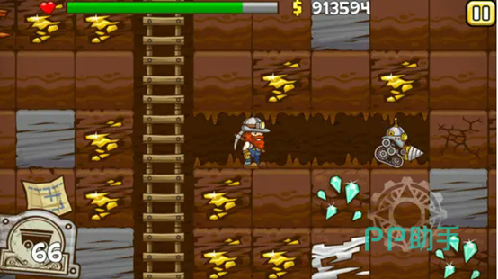 小小矿工这款游戏有着非常深的矿产分布,而且还有黄金矿物以及钻石矿物的区别,玩家可以在游戏中购买小型钻地机器来进行挖掘,搭建好木梯就能够随意的出入自己挖好的矿石通道,通过矿车往上运送,而且赚取到金钱后还能够在商店购买很多不同效果的增益资源,如果担心自己耐力不足那么就可以购买医疗包来进行耐力的增强哦。