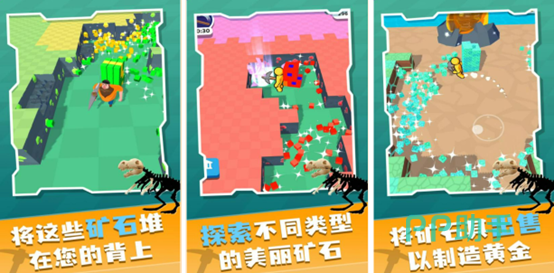 矿工大冒险这款游戏有着各种不同价值的矿产资源,会以各种不同的颜色来进行区分,玩家还能够根据不同的标识来进行分辨,游戏中有着许多不同的皮肤来让玩家给角色进行装扮,想要更快更高效的挖矿那么就必须要用金子来升级自己的谋生工具稿子,挖好后背上矿石进行出售换取黄金就可以啦,玩法简单但是非常有趣,值得大家试试哦。