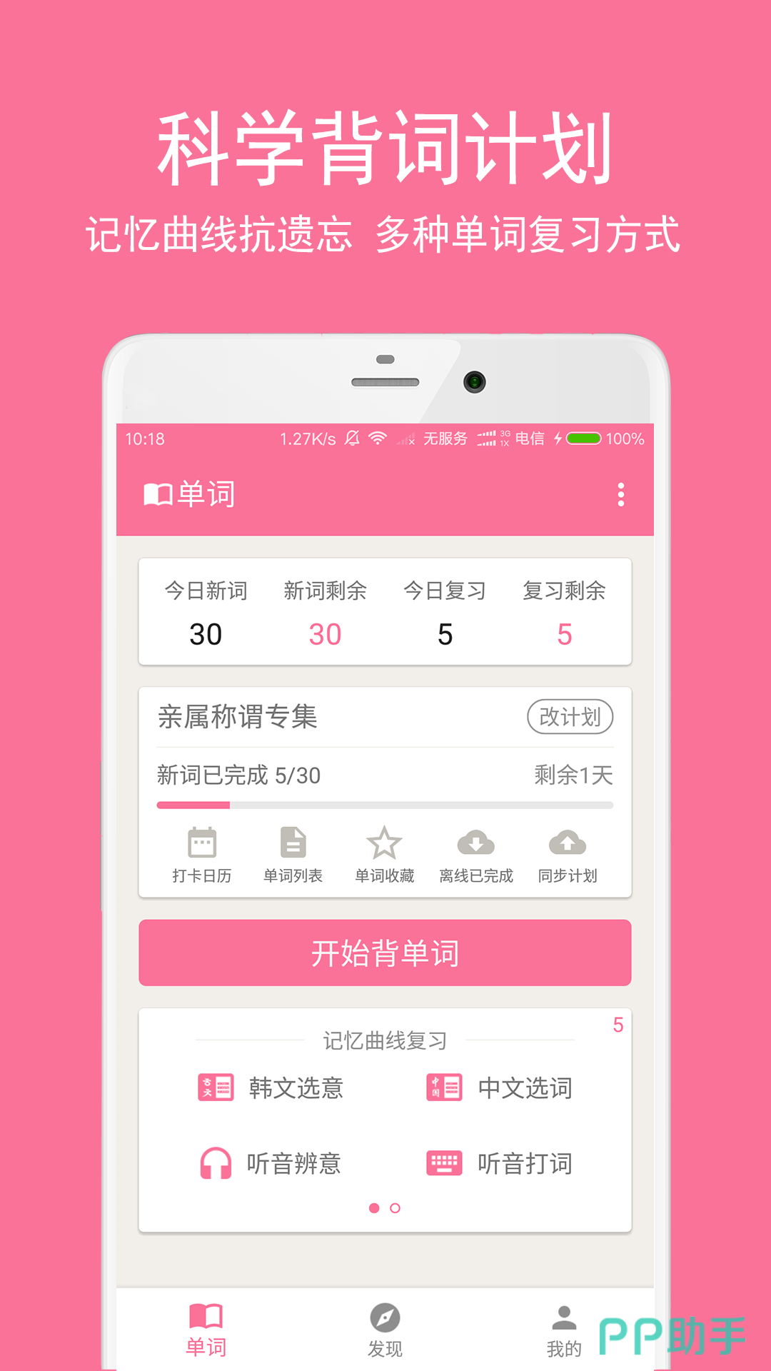 专门为韩语爱好者准备的背单词软件,因为在韩语学习中单词占的比重非常大。要想记住首先要学会读,采用了40音节发音表的方式展现,快速掌握最精准读音。