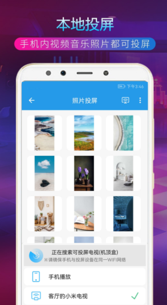 在这里,用户们可以快速的实现手机投屏操作,覆盖的视频内容非常广泛,还能享受大屏观影的快乐,将图片、视频、音乐等等都能投放到电视上。