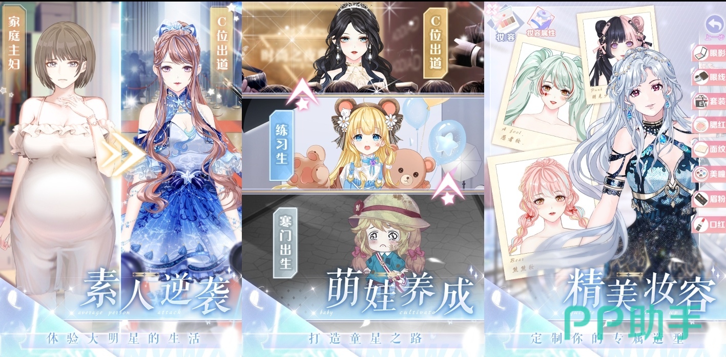 《璀璨女王》这是一款养成类的休闲游戏,玩家可以从一个萌娃开始养成,到少年时期成为一名练习生,不断的努力历练自己最后成功的c位出道。还可以从一个素人家庭主妇摇身变成一位巨星,还有非常精致的化妆玩法,还可以搭配各种各样的服饰,然后和心动男神进行约会。