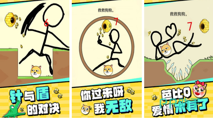 《我的狗狗》是在游戏里画出一些图形来阻挡蜜蜂的游戏,游戏中有个倒霉的狗子,身处蜜蜂的包围,只能躲在角落里瑟瑟发抖,玩家们要拯救这个可怜的狗子,在游戏里画出很多的防御工事来阻挡蜜蜂,如果有一只蜜蜂突破了玩家们的防御蜇到了狗子任务就失败了,只用完成上一关的任务才可以获得下一个关卡的进入权。