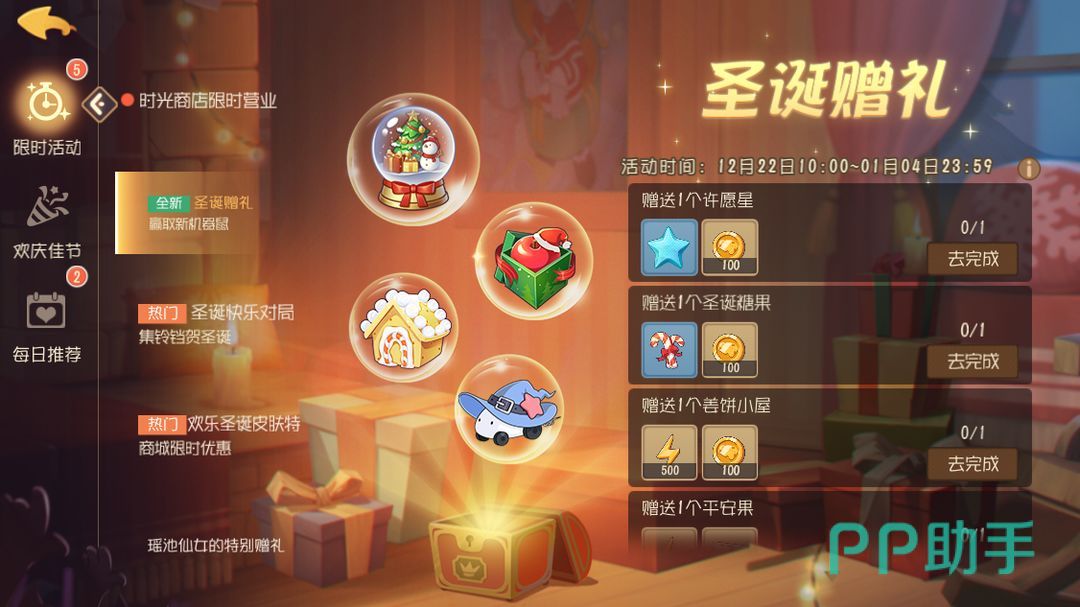 圣诞礼赞活动也会在此上线,各位不要忘了去装扮自己的圣诞树哦。在这么重要的日子中,与好友联络感情也是必不可少的,各位可以通过赠送好友礼物来获取额外的奖励。在这这次的圣诞佳节中,各位将会和谁一起度过呢。