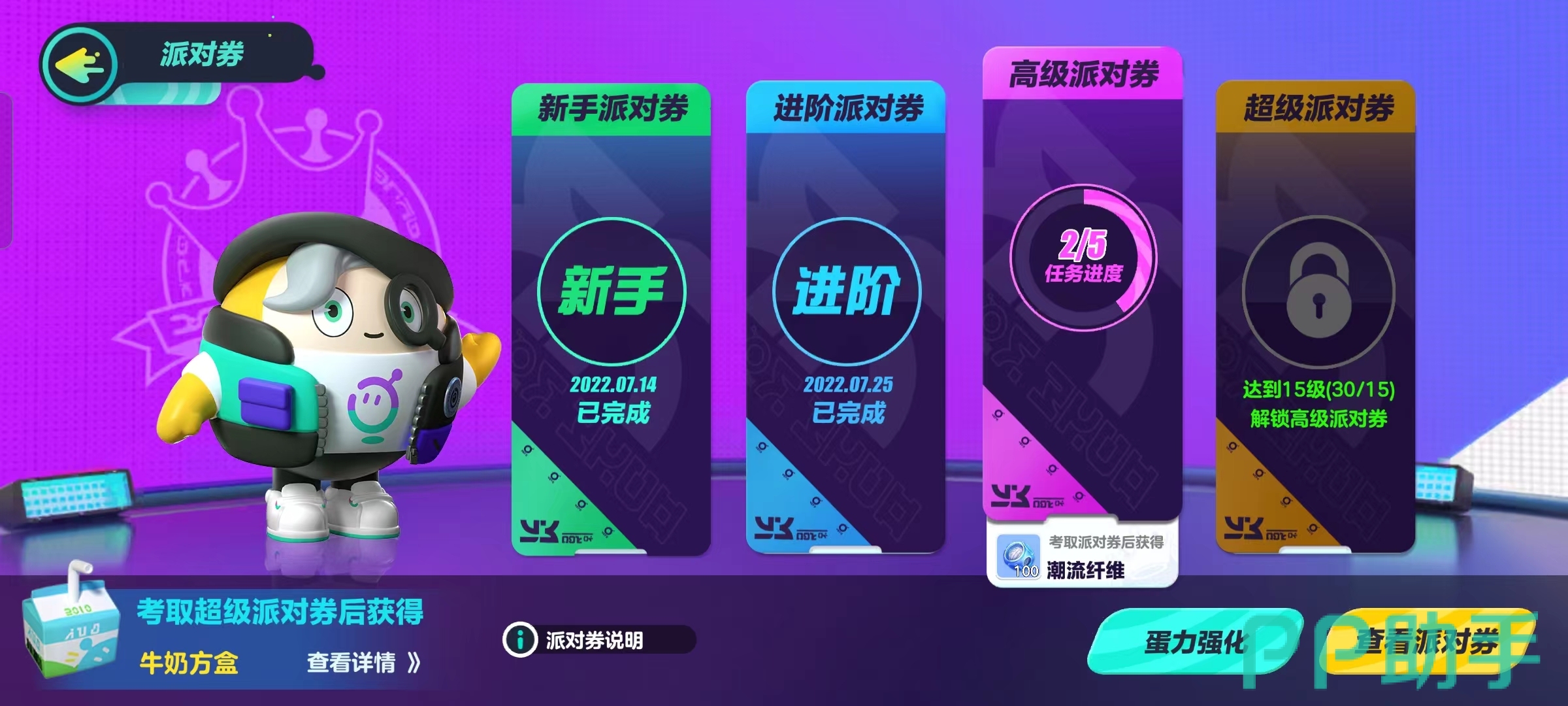 玩家们解锁派对券也只有一种方法,在规定的时间内完成关卡内需要玩家做的条件,坚持到游戏结束就代表正式通关了,但是玩家也不要太开心因为在一个等级的派对券内拥有4—5个关卡,只有全部通关的情况下才能代表完成整个等级的派对券开启下一个。