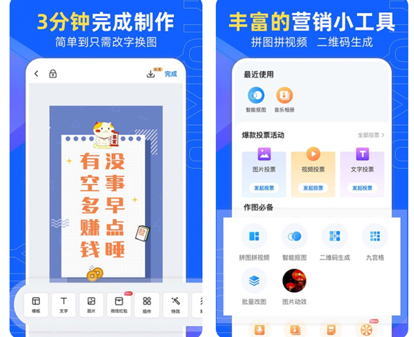 这是一款特别好用的手机软件制作平台,拥有了它之后就可以实现拼图自由等各种设计相关的操作,不论是是公众号的封面还是各种简历跟学术的海报等,只要你是你需要的都是轻松的做出来。