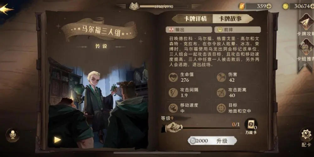马尔福三人组:在使用该卡牌的时候,可以召唤出三人组合,并且三人都会攻击统一目标。