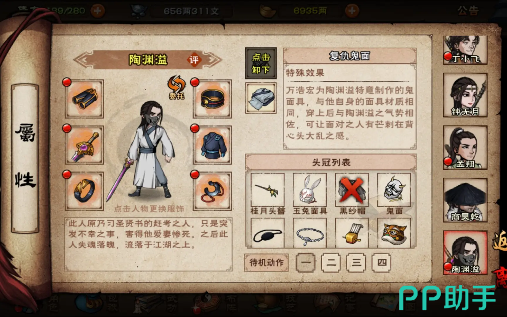 陶渊益:该角色解锁需要完成他的专属任务之后才能获得,在游戏中他也是非常适合平民玩家的前排角色,而且他的面板数据导致他在游戏中适合多样属性的武学功法。