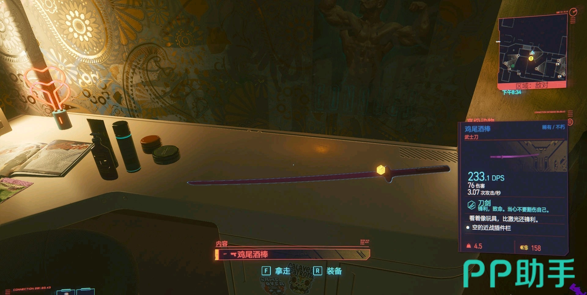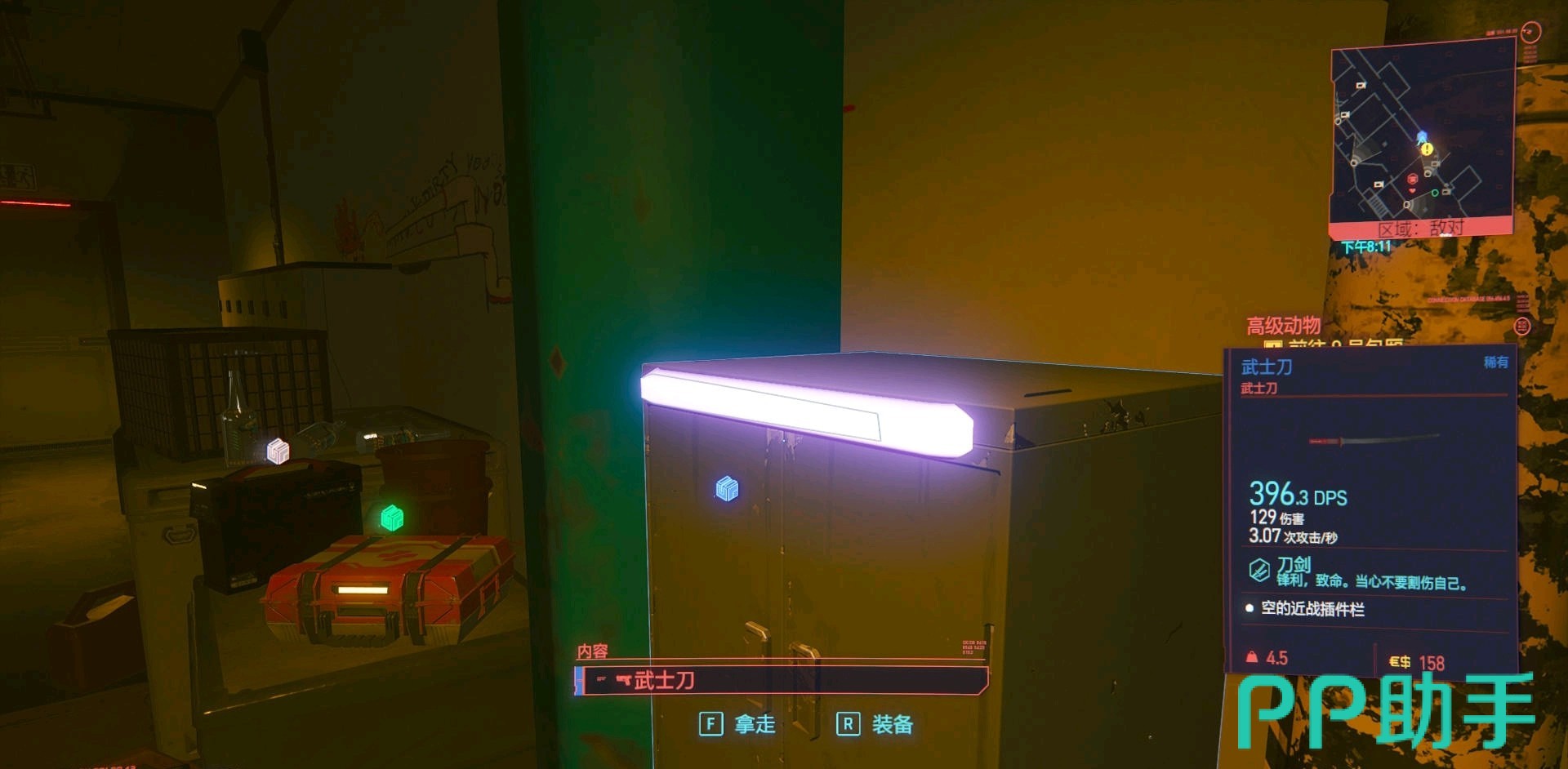 在VIP区找到下图所示的门进入,搜查一番就会找到一把蓝色武士刀。