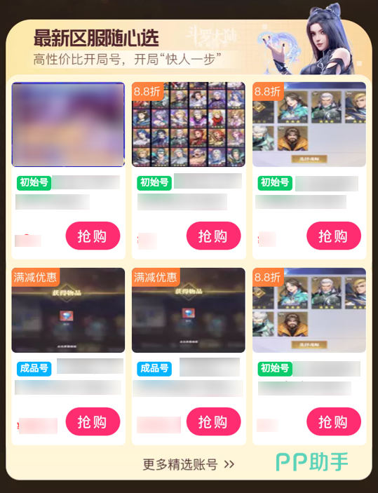 如果大家打开交易猫搜索游戏名称,就能够发现斗罗大陆魂师对决的交易专区,在专区首页向我们展示的一些账号商品都是比较优秀的,而且会有一些优惠的福利可以享受。如果是新玩家准备尝试一下游戏,那么个位数就可以入手的一些初始号或许就是不错的选择,这些账号并不是一无所有的,一般都会带有一些新手适用的角色或者是比较容易在前期就培养起来的阵容,帮助大家快速适应游戏节奏。如果你是老玩家,想要尽快获取强大的战力,那么专区内的一些成品号也可以考虑一下,不仅价格非常实惠,而且其中包括的精品内容也不容随便错过哦。